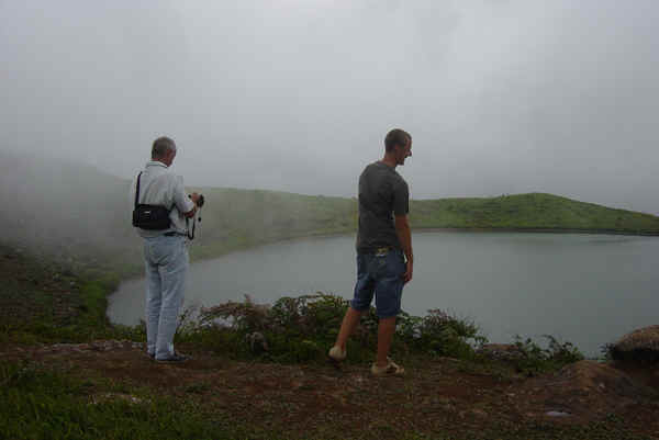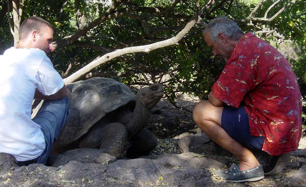 One day we do a land tour over the island as far as there are roads and we see big turtles, marine iguanas and a beautiful crater lake above which numerous frigate birds circle in the up-draft.