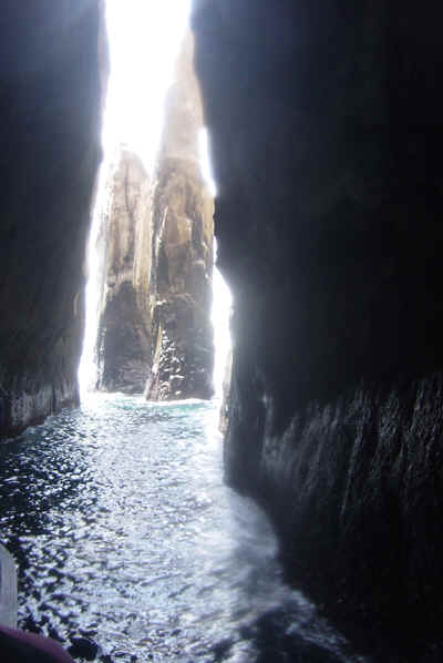 board, weigh anchor and quietly sail along the island to its western end, Punta