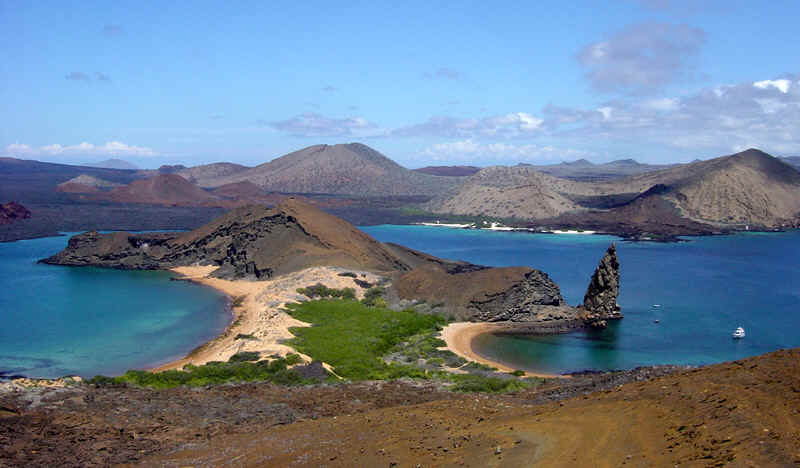 The real good thing about Puerto Ayora is that from here you can go on many different, but very nice day tours, and that certainly is the choice to take, if you cannot go on your own keel. More details about this options can be found in: Since we would explore the places south of Santa Cruz with our own boat, we also wanted to make at least one boat tour to the north, in particular to the little island of Bartholomew, just off the coast of the Island San Salvador. These tours start very early in the morning with a bus ride across the Island of Santa Cruz to the north, to shorten the boat trip enough to make it in one day. Johnny had booked the