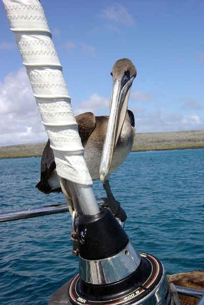 Then it was time to sail to the next island: Espaniola. This is the most south-easterly and also the oldest island of the archipelago. We have to go against 1.5 knots of current and so it gets late afternoon when we arrive at Gardener Bay. It is too late to get ashore, but we enjoy the a nice evening at anchor and pelicans on our rail.