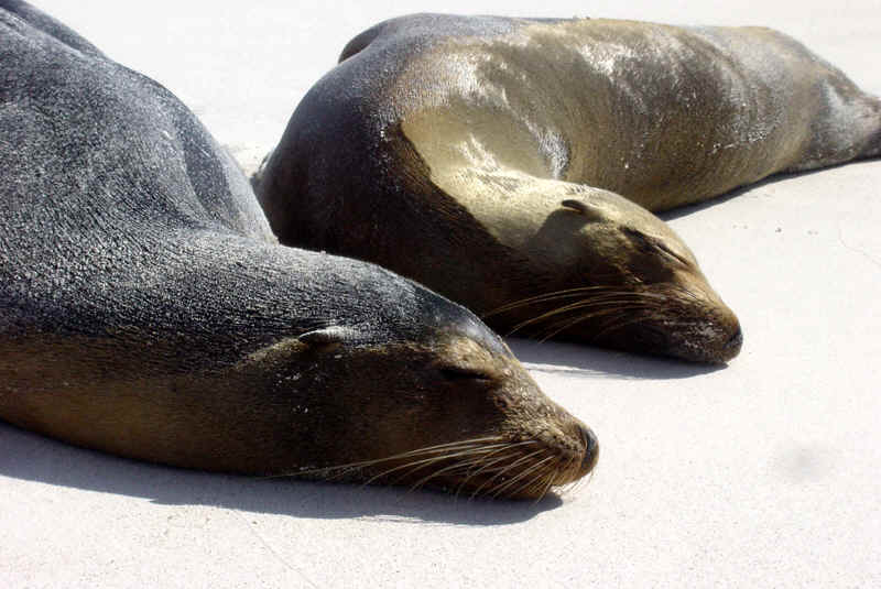 along the mile long beach, from sea-lion family to sea-lion family and study