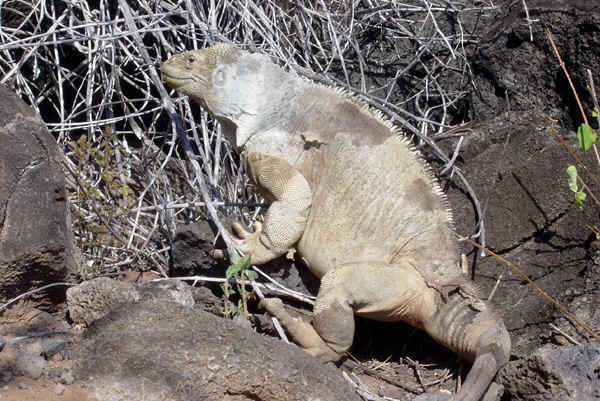 Santa Fee is famous for the land iguanas, which are not as common as their marine equivalent and they are often hard to find. But this is not a problem for Marlon. Again he times our trip in a way that we feel we are alone on the island and as we hike up the cliff, he spots several of them including a baby. Then the climb up the