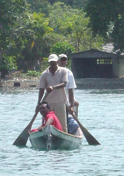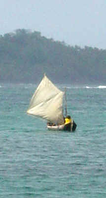 Another concentrated sailing day through the uncharted waters brings us to our next stop: A nice place called Mamitupu. Again a little village, maybe even smaller than the one at Isla Piņo and on a wonderful little island. A sailing canoe that was far out near us now lands at the same island. By the time we come ashore it is all unrigged and tidied up.