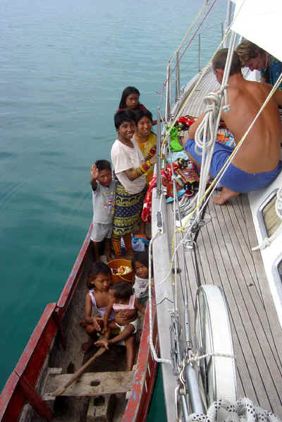 In the eastern part of the San Blas, yachts are still few, but certainly for the Kunas they have become common visitors and trading partners. In every community a yacht has to pay $5 to the congress, which entitles them to orderly complain if they feel they haven't been treated right. But this is unlikely as crime seems unknown in this area and boats and their belongings are very safe. In addition to that the Kunas have a very friendly and humorous character; they are giggling and laughing all day and if you walk through their villages that is the most likely noise to hear coming from the wooden houses.