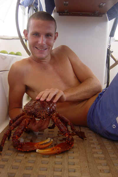 The Kunas have simple means of fishing and at best they may tow a line from a dug-out canoe with a small sail. They just get what they need for living and consequently the area is still quite full of fish. And snorkeling along the reef Felix found and caught a huge crab.