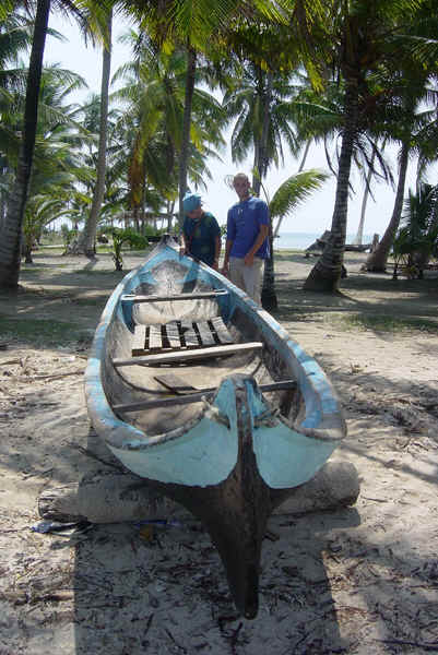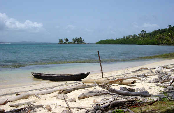 The first Kuna village we visited, was that at Caledonia and it was a quite large one with some 2000 people. Strangely one has the impression of something rather smaller when walking through the 'streets'. Our next stop is at Isla de Piņo, where we anchor off the most perfect beach, lined with beautiful palm trees. From there it is maybe a mile by dinghy to the small village (200 people), a little to the north.
