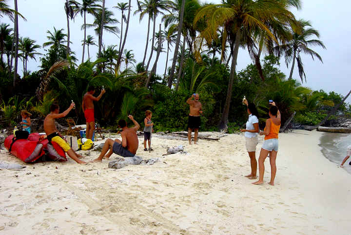 It is indeed a very nice, picture book like place. We stayed for a few days, diving, wind-surfing, and waited for Wetnose to arrive from Aruba. Eventually Harald's birthday came up and we picked one of the lonely little palm islands to celebrate on the beach together with the crew of Wetnose and Nis Randers.