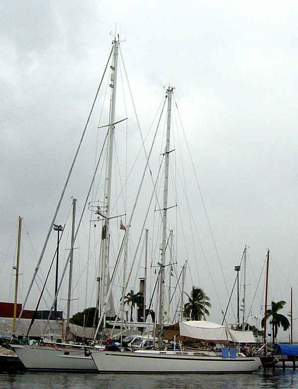 Once in Colon we found out more: Wetnose could go through the canal any time after 48 hours, but Taniwani would have to wait approximately two to three weeks. The reason was that Wetnose has been through the canal before with her previous owner and was measured at 65.7 ft and boats over 65 ft get a fully licensed pilot, smaller boats get a trainee as advisor. The shortage on pilot trainees causes the long wait time. But if a smaller boat requests a real pilot, it will have to pay $2250 extra, for what the bigger ones get for free. On the other hand boats between 50ft and 80ft pay all the same price and from 65 ft up the real pilot is included. So we had the great idea of making Taniwani longer by rigging one of the spi poles as a bow sprit and with this and the dinghy far out back in the davits we measured 70ft! So everybody was happy and