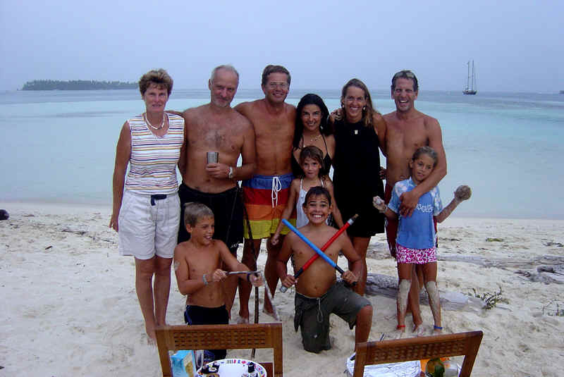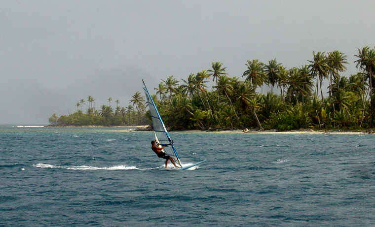 the San Blas islands. So we soon were back in this beautiful spot and Felix was very happy to play with his new windsurfer in the well protected lagoon. Soon he got better and didn't need the "bring me back to windward service" any more, and than he also figured out the water start. But we were all having a good time there and yet another birthday to celebrate on our special little island. This time it was Inga's turn. Inga also called "Mother of Pearl" is from a new and pretty Hallberg Rassy 43 named Pearl. www.RouchesBigAdventure.com Wetnose had met them already in the Windward islands and both kids and adults were getting along very well. So we all joined into another birthday party at the beach and had a good time.