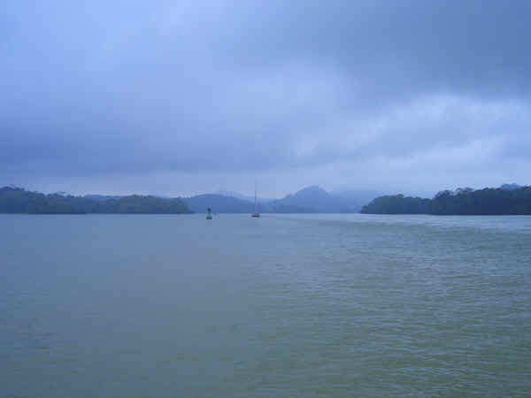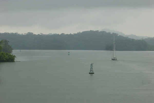 While the canal is operated 24 hours a day, 7 days a week, yachts are only taken through at daylight. That means the boats need to be able to cruise at a certain speed to make it in one day. It used to be that that they accepted sustainable speeds of over 5 knots as acceptable, but since a year have raised the bar to 8 knots, which is impossible for many of the smaller boats. So if you specify a sustainable speed of under 8 knots, you will be scheduled for a overnight stop at Gatun Lake and they will charge you an extra $450 for the advisor who will be picked up in the evening and brought back to your boat early in the morning, most likely a different one. The result of the raised speed limit is that even the smallest boats claim to be able to do 8 knots, so that they do not have to pay the extra fee, and the schedulers knowing that, now schedule all regular yachts with an overnight stay at Gatun Lake. So everybody is happy. Boats above 65 ft, those that go with real pilots, are scheduled for a one day passage and, like us, start very early in the morning.