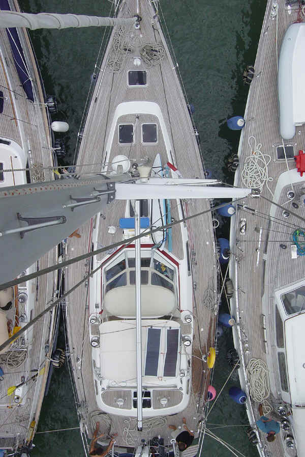 on deck by hanging dinghy high above it. That way we had space for two smaller