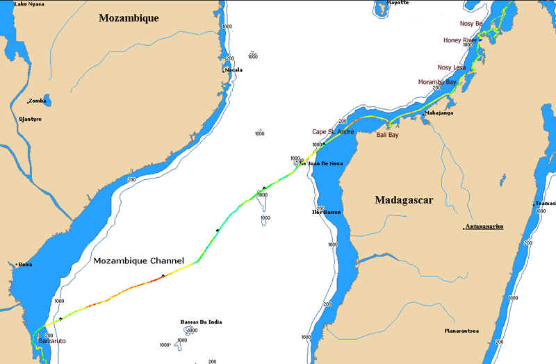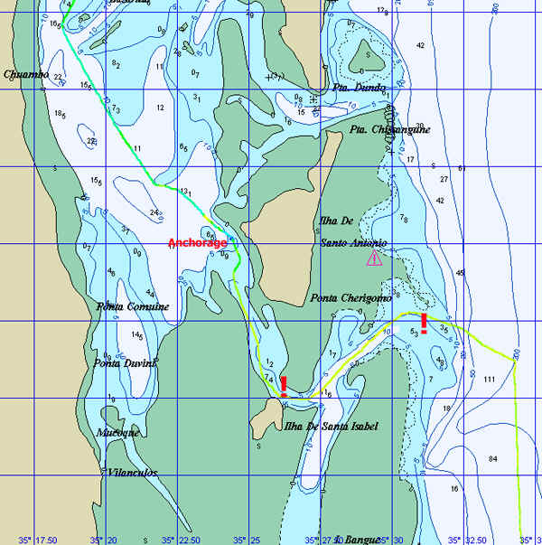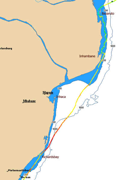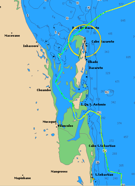 followed the straight line to Bazaruto and had suffered from similar adverse
