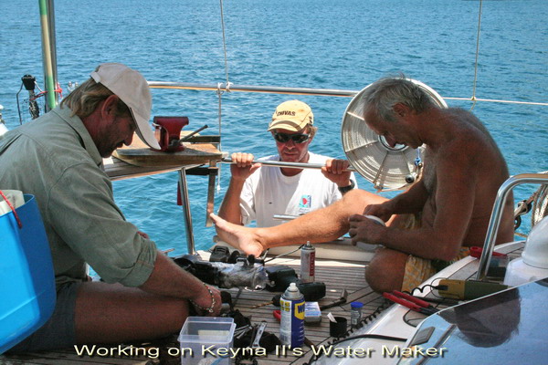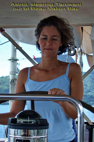 Titom launched the dinghy, just to pick up Harald to have another look at the autopilot. It turned out Pascal had switched the hydraulic hoses to the tram, he thought we had put them on the wrong way. As a result the autopilot steered away from where it intended to. Luckly we didn't have to switch the hoses, as the pilot can be programmed either way and from then on it was really OK.