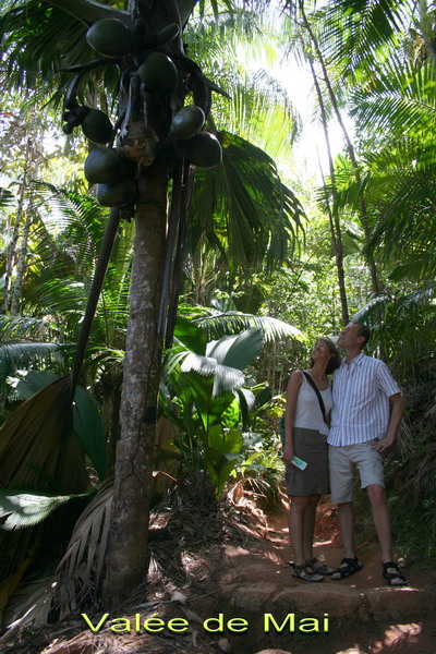 Valée-de-Mai is one of these places, that every visitor to Praslin has to go to. Off course it is a natural park, and off course the entrance fee of about $20 needs to be paid in anything but seychellois money. But it is a very nice walk through a tropical forest with impressive trees and plants. The highlight of course is the Coco-de-Mer palm trees with their unusual and huge nut. A tree that only grows in Valée-de-Mai and on the neighboring island of Curieuse.