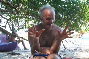 With Astrid and Markus we spent many days there, scuba diving, body boarding in the surf or behind the dinghy, or simply on the great beach.