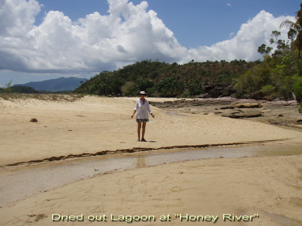 mouth over the sand bar and then anchor inside near Linga-Linga, but in