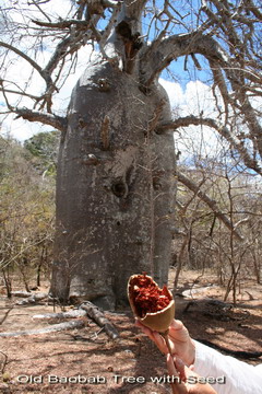 The fruits, which grow on the female trees are huge, weighing some 20-30 kg, and their form appears to resemble e female butt. If you want to take one home, it gets of course emptied, numbered and registered and you pay a lot as they are very limited. To make the fuss about these trees complete, the male tree has a phallus like stem that holds the seeds. Oh well.