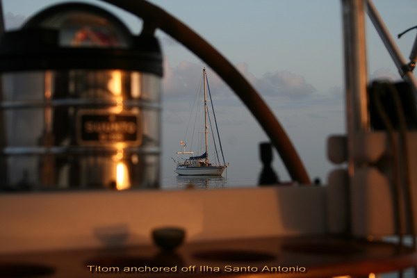 And so we did. Carefully following the deeper trenches we had a nice and easy sail down the lagoon, from Santa Carolina, to Ilha Santo Antonio, the next island south of Bazaruto Island. We anchored near Titom and soon met for some drinks. We heard that Titom's autopilot had failed and the had to hand steer most of the trip from Madagascar. As usual Harald went over to fix it.